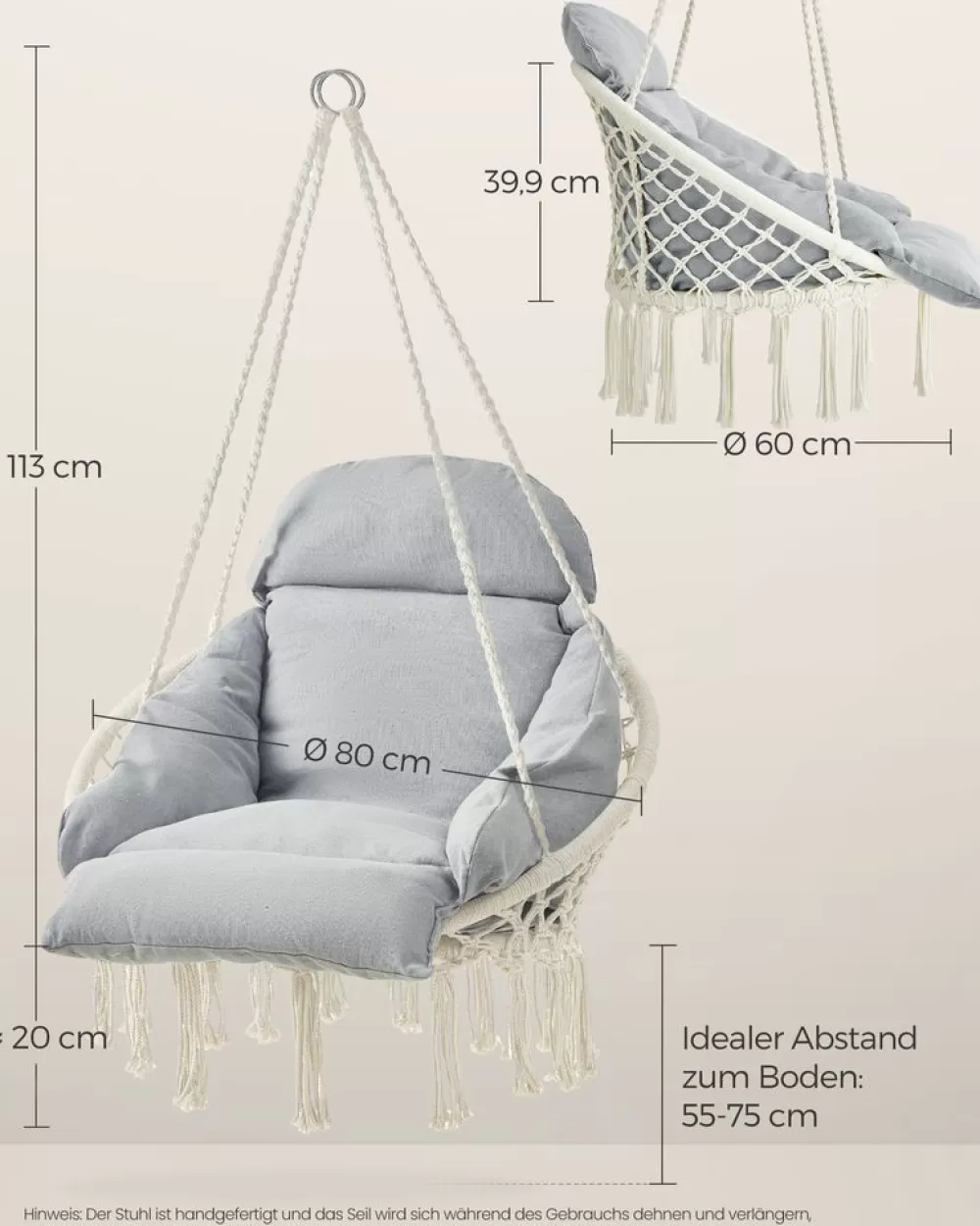 Be the first to review “Cheap SONGMICS Hängesessel mit einem dicken Kissen Beige” Antwort abbrechen