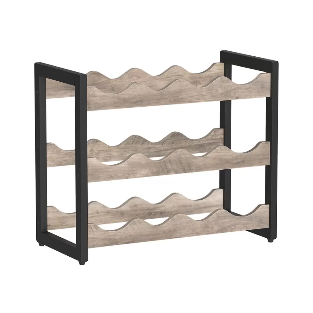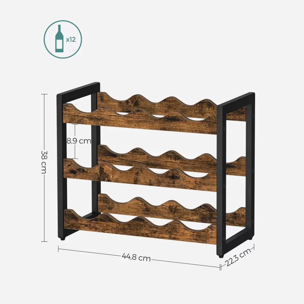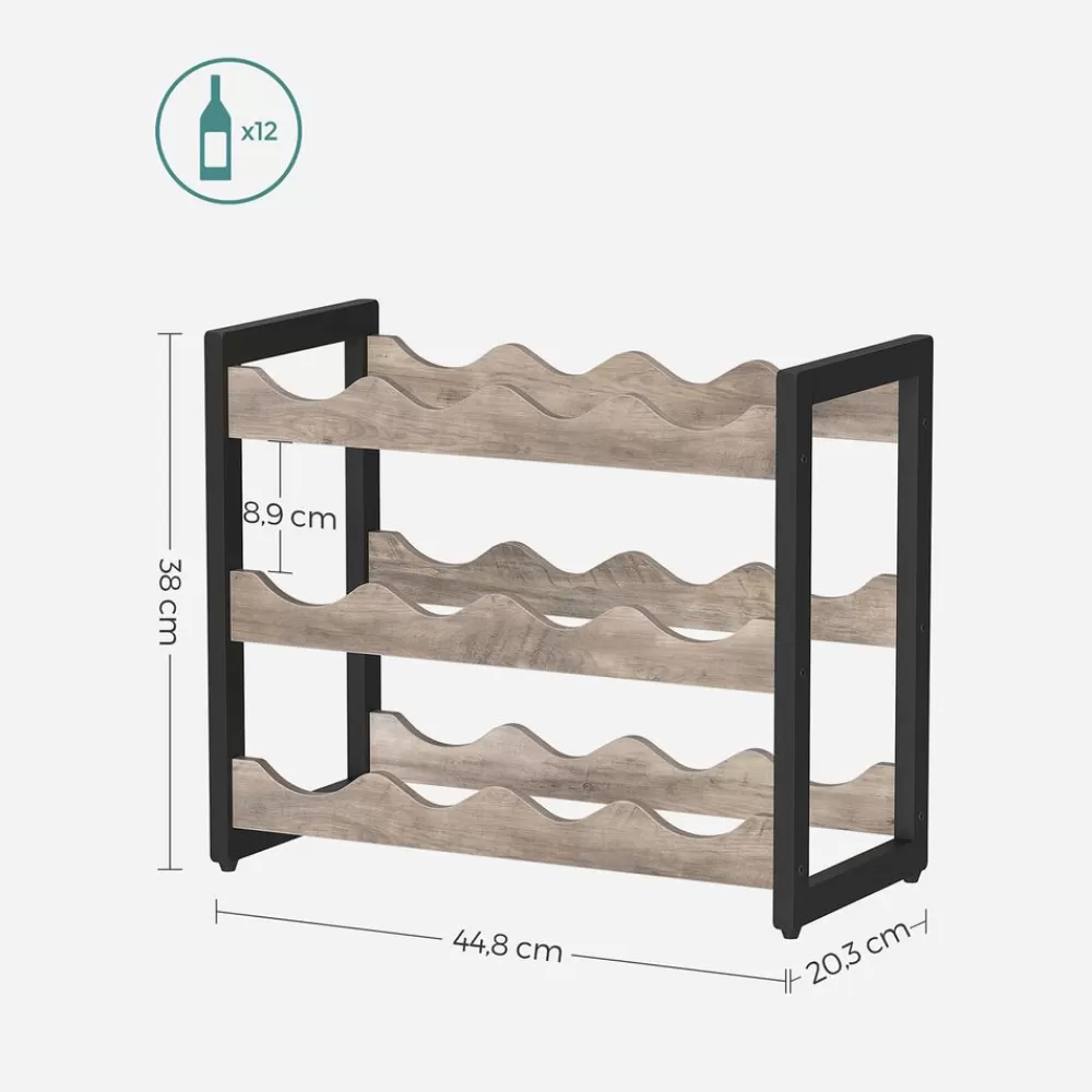 - Planen Sie eine Party? Mit diesem Flaschenregal ist Ihre Hausbar immer bereit. Dieses Weinregal bietet 12 offene Fächer, in denen Sie Ihre Weinsammlung präsentieren können. Abgesehen davon, dass es eine gute Aufbewahrungsmöglichkeit ist, ist dieser Weinhalter auch ein großartiges Dekorationsstück, das Ihre Weinsammlung aufwertet.