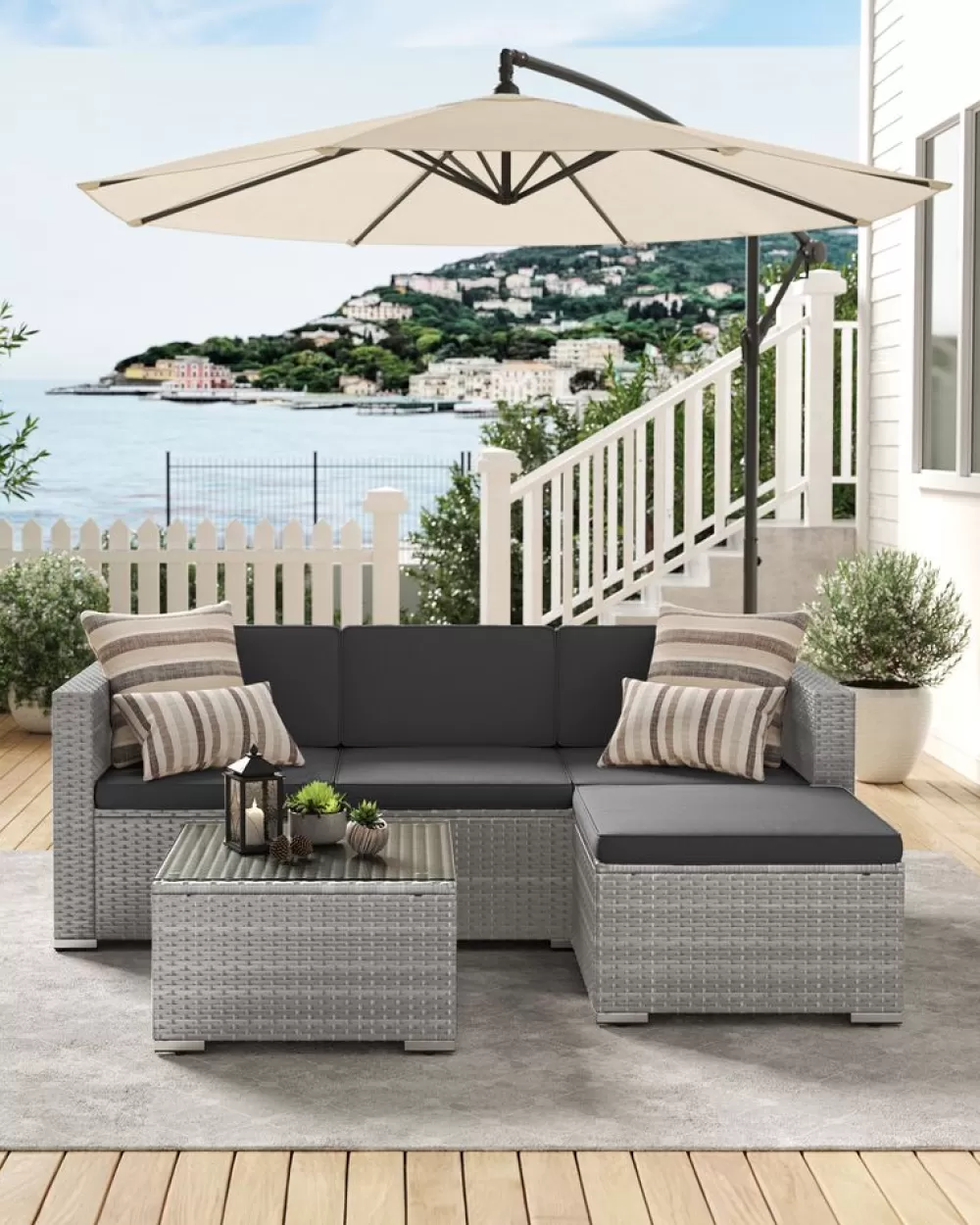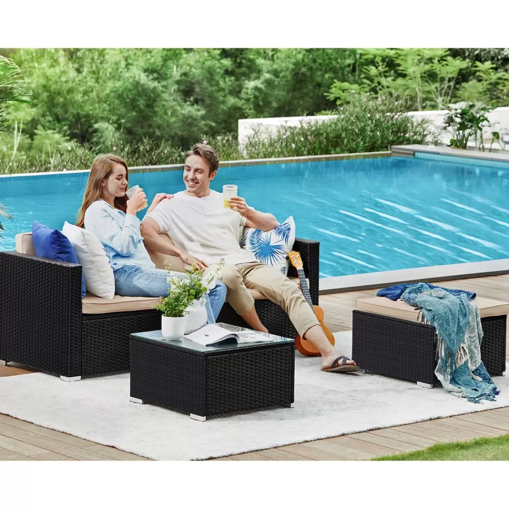 Flash Sale SONGMICS Balkonmöbel aus PE-Polyrattan mit Kissen und Glastisch