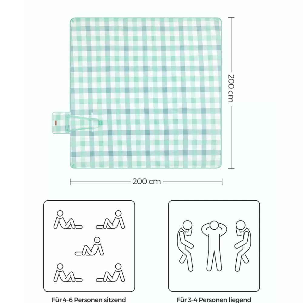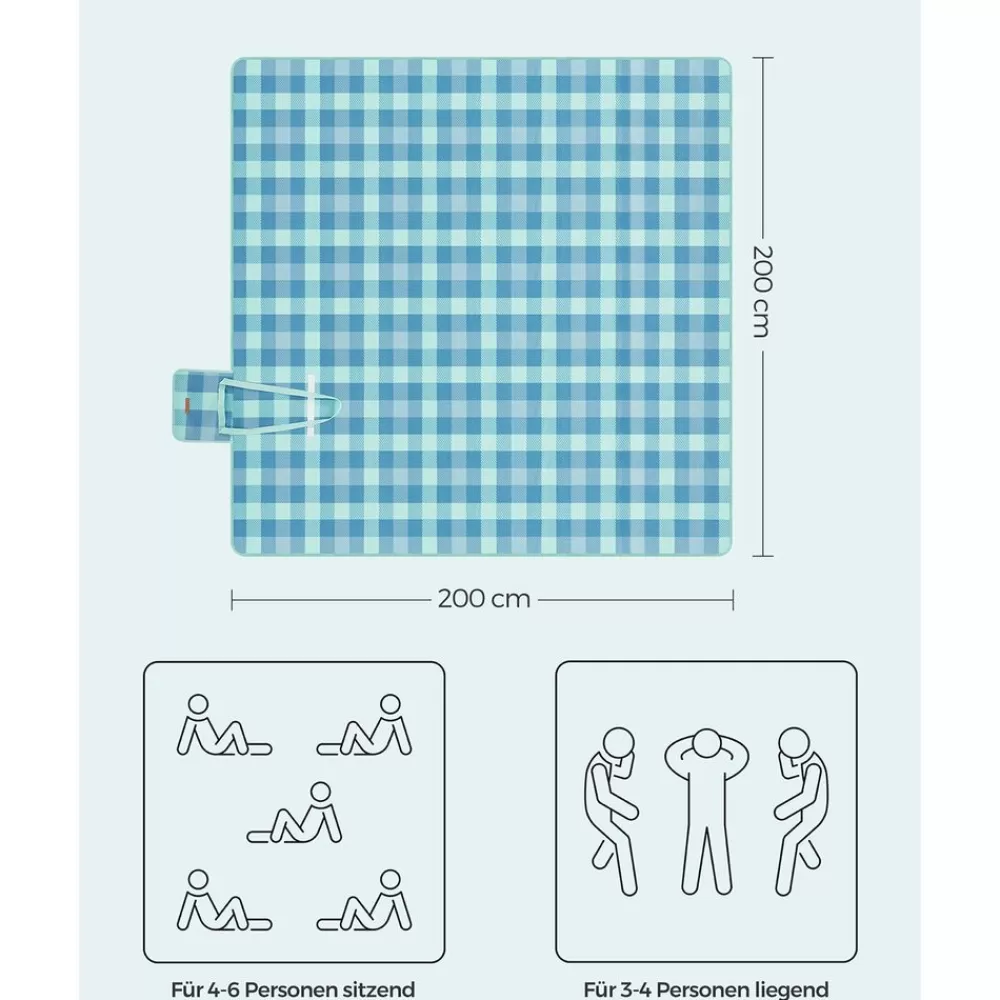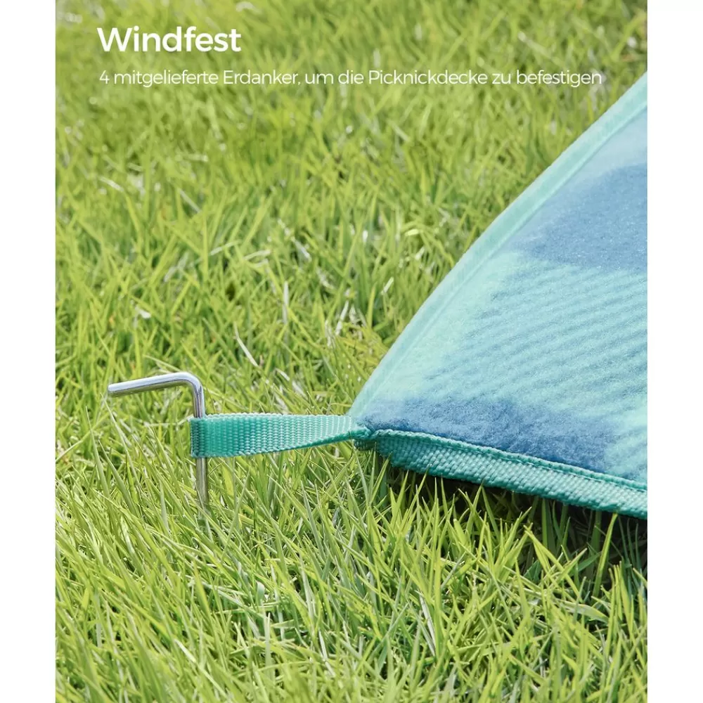 Flash Sale SONGMICS Picknickdecke 200 x 200 cm wasserdicht grün-blau