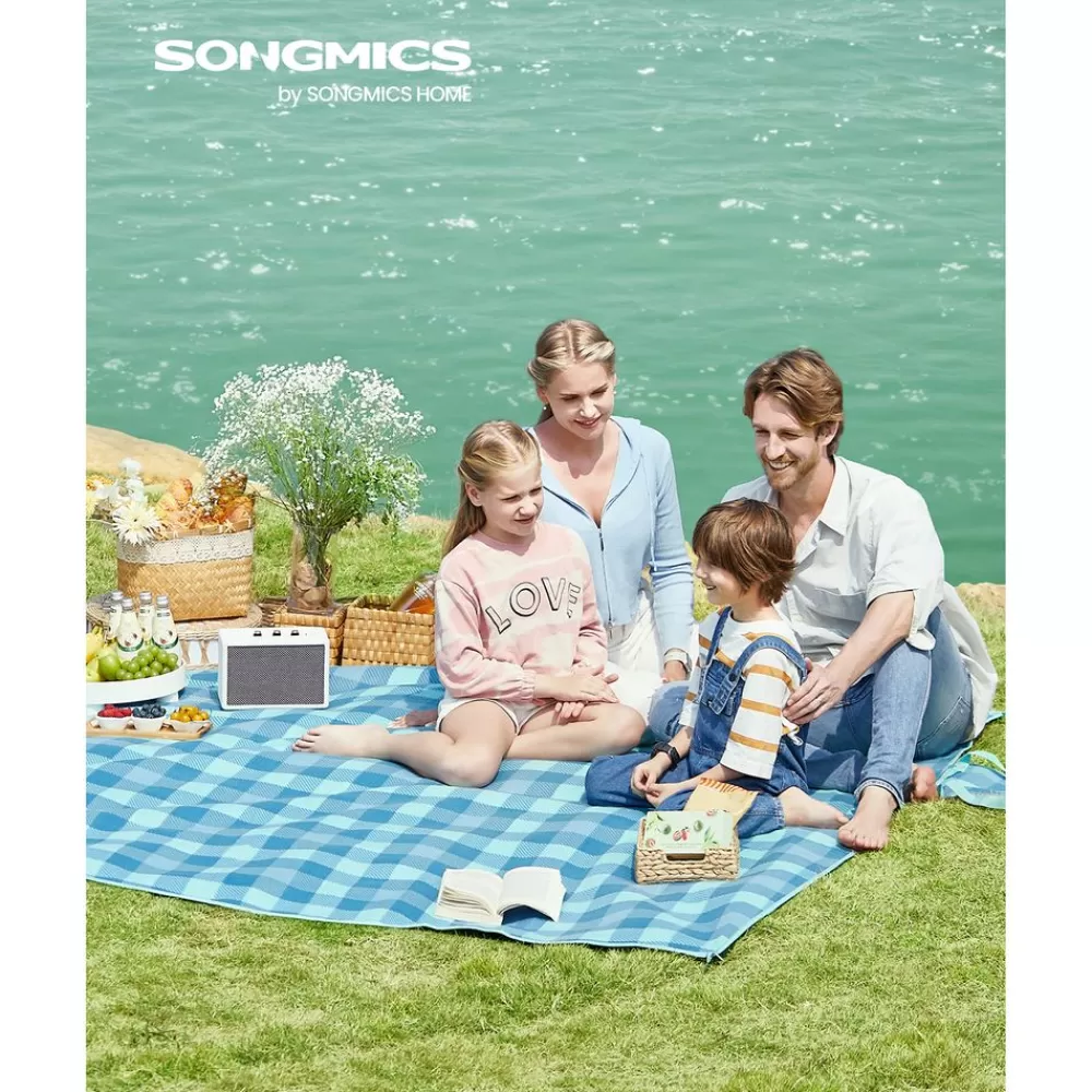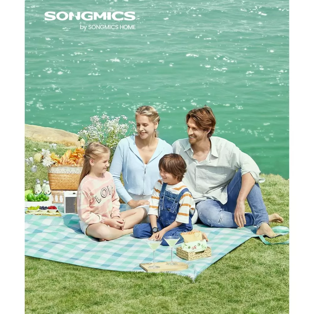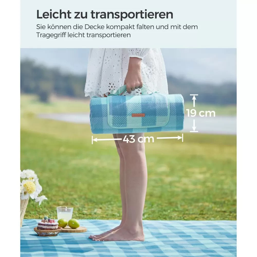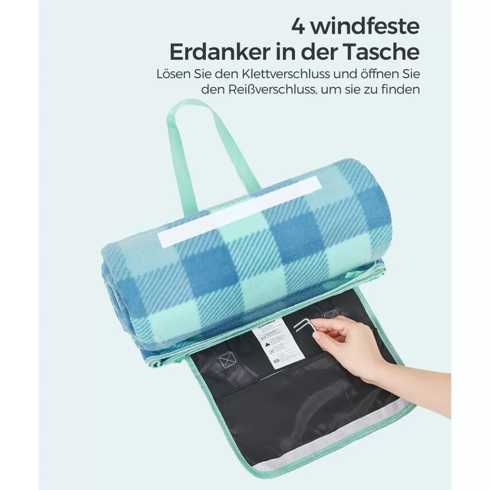 Flash Sale SONGMICS Picknickdecke 200 x 200 cm wasserdicht grün-blau