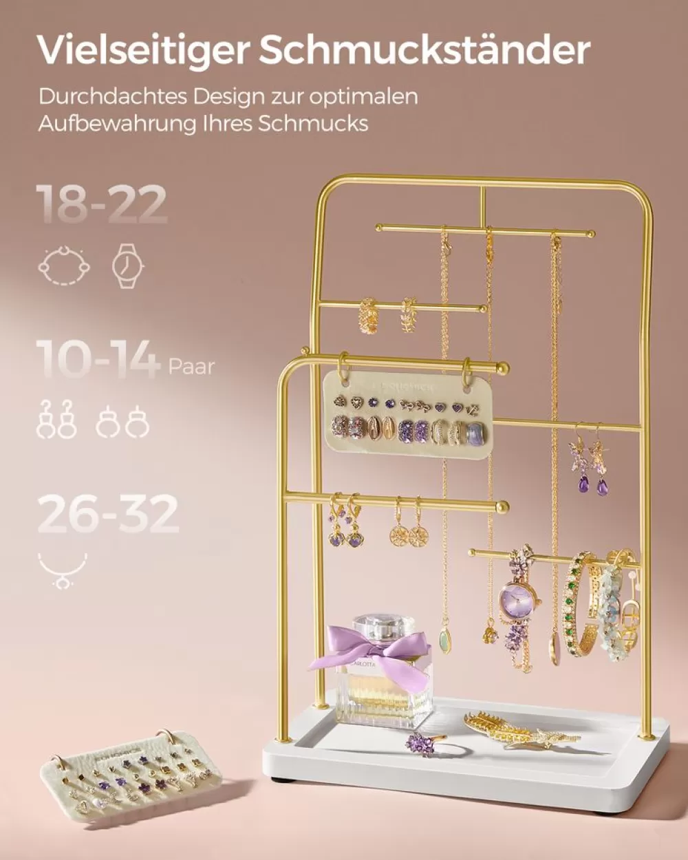 [Schlicht und stylish] Gold-Weiß-Farbkombination, stabile Stahlrahmen – dieser Schmuckständer ist nicht nur der perf…