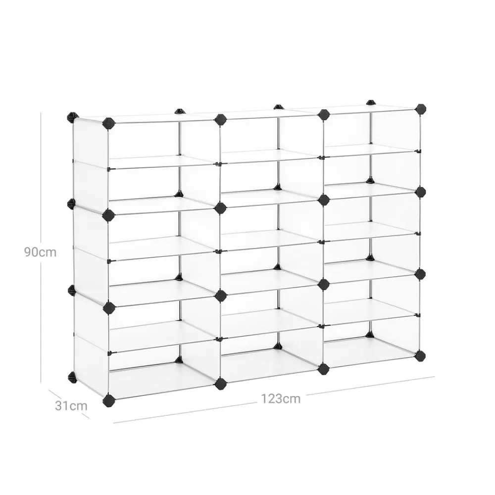 Stabilität steht an erster Stelle: Die PP-Kunststoffplatten dieses Regalsystems werden durch hochwertige Verbindungsstücke fest miteinander verbunden, was für eine gute Belastbarkeit sorgt. Jedes Fach kann ein Gewicht von 5 kg aushalten. Sie können also Kleidung, Schuhe, Spielzeug oder Taschen problemlos hierin verstauen. Die Stabilität dieses Regals wird zudem dank der beiden mitgelieferten Anti-Kipp-Gurte erhöht.