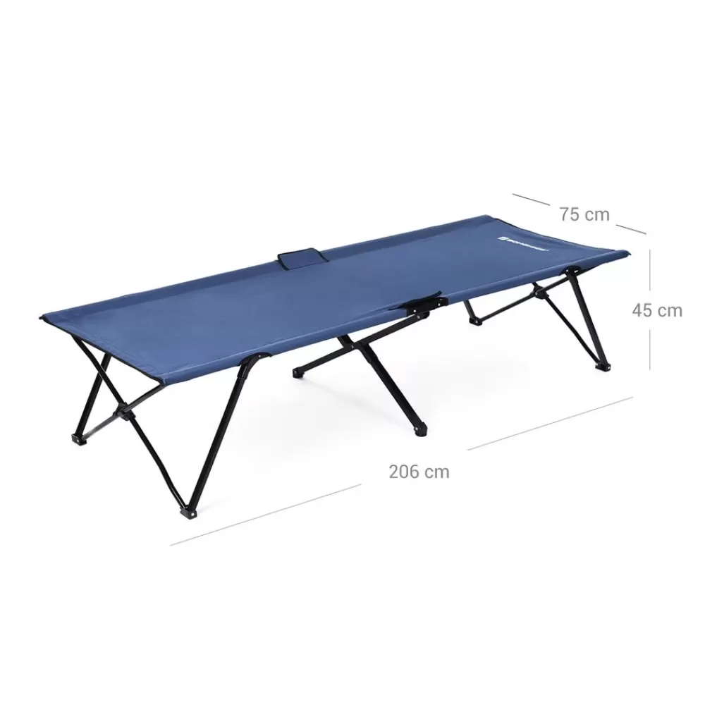 Hervorragend eignet sich das Feldbett für Ihre Camping-, Wander- und Angeltouren. Die extra große Liegefläche bietet besonders viel Platz. Durch die Überlänge kann man gut und bequem drin liegen. Und ohne Endstreben, die beim Schlafen am Kopf oder an den Füßen stören, stattdessen ist zur Verspannung die Unterseite des Bezugs mit Querbändern versehen. Der Schlafkomfort ist deutlich angenehmer als auf einer Iso-Matte und durch die Höhe ist zusätzlicher Schutz vor Bodenkälte gegeben.