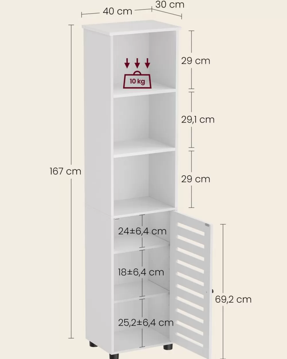 – Größe: 40 x 30 x 167 cm (L x B x H)