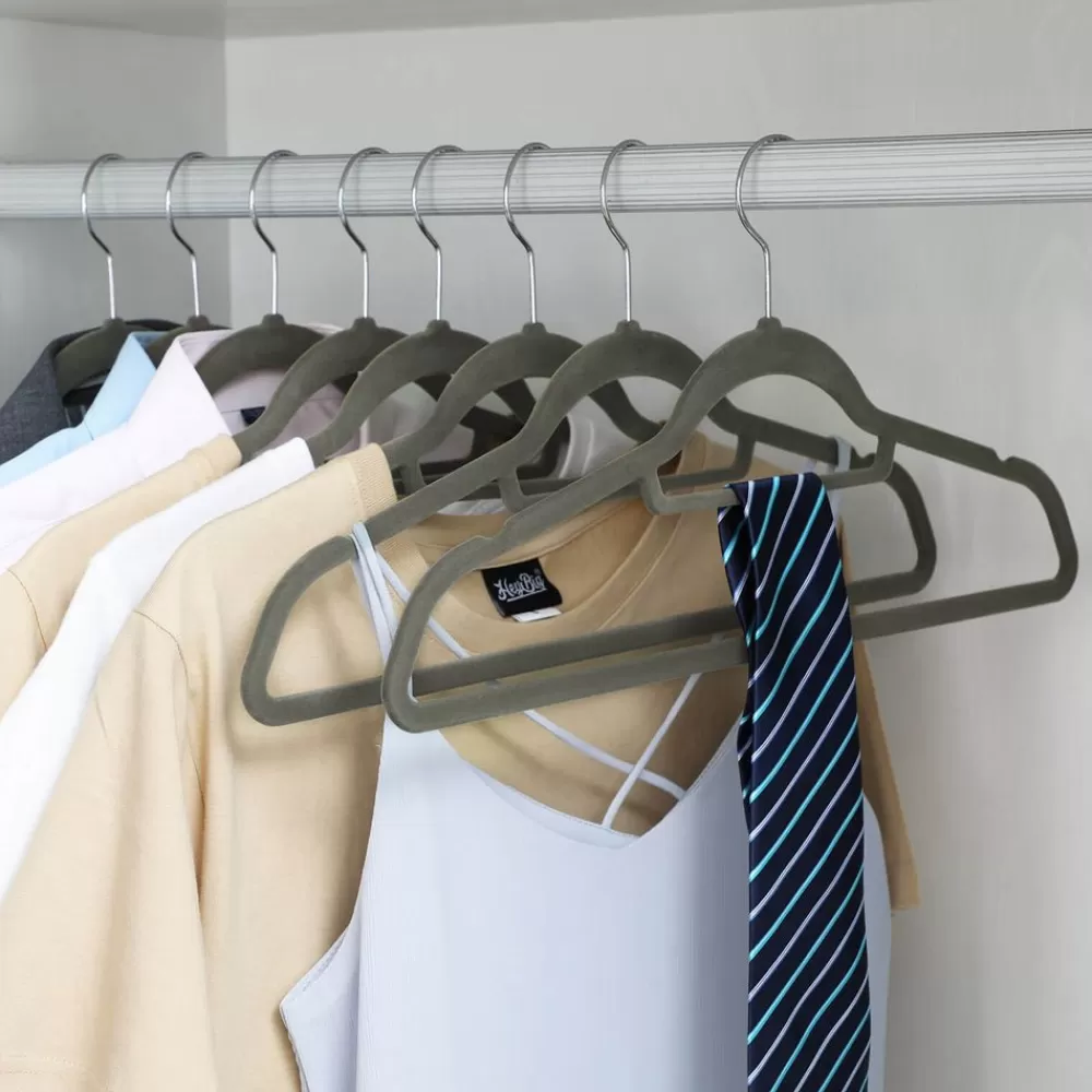 Rutschfest – Hochwertiger Kleiderbügel mit samtüberzogener Oberfläche, die die Reibungskraft zwischen Kleiderbügel u…