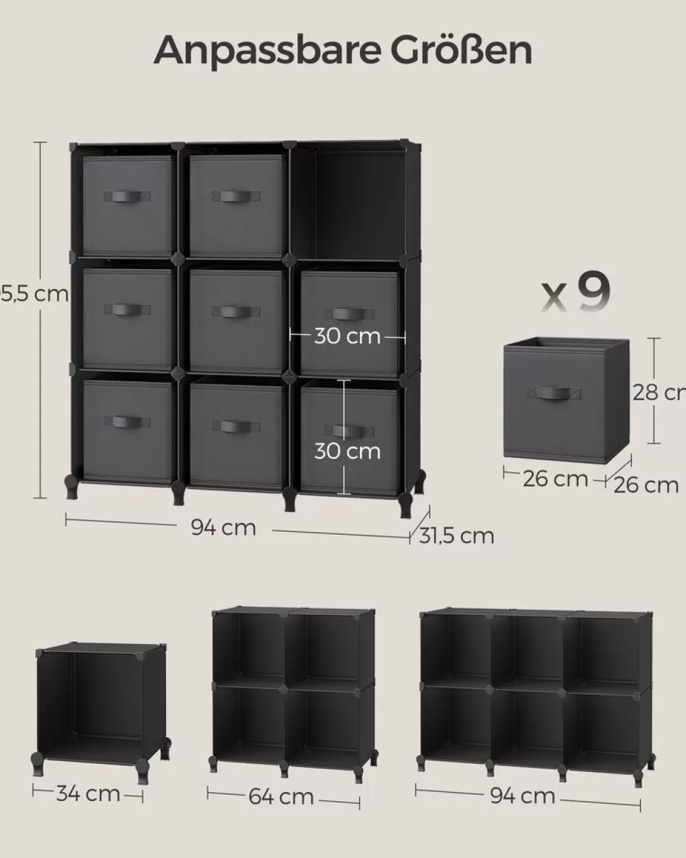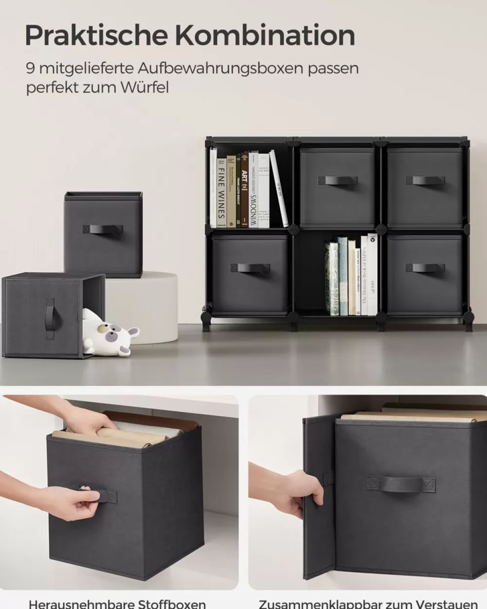 [Perfekte Kombination] Mit dem Regal mit 9 Würfeln und 9 Boxen können Sie Ihre Kleidung und andere Gegenstände ordent…