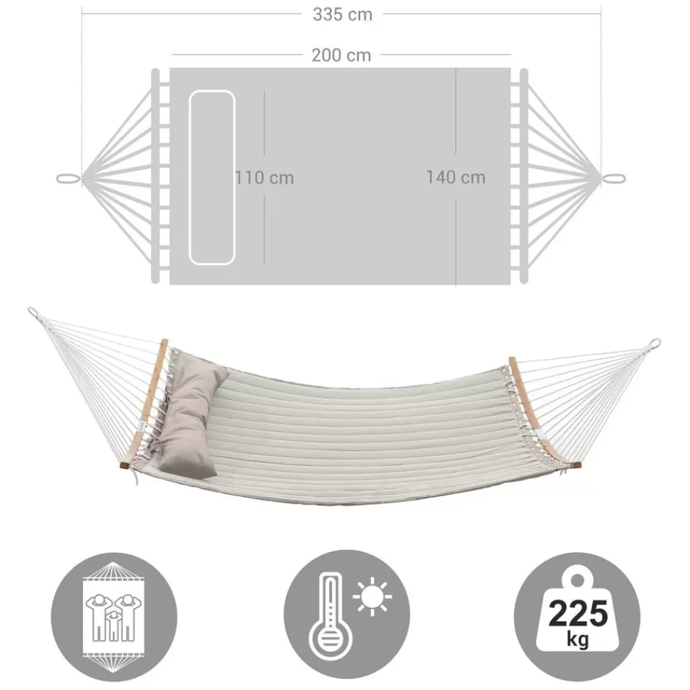 Legen Sie sich gemeinsam mit Ihrem Partner in diese große Hängematte und genießen Sie das blaue Meer, den frischen Wind und das beruhigende Geräusch der Wellen. Möchten Sie den Sonnenuntergang beobachten? Kein Problem!Eignet sich für die Reise