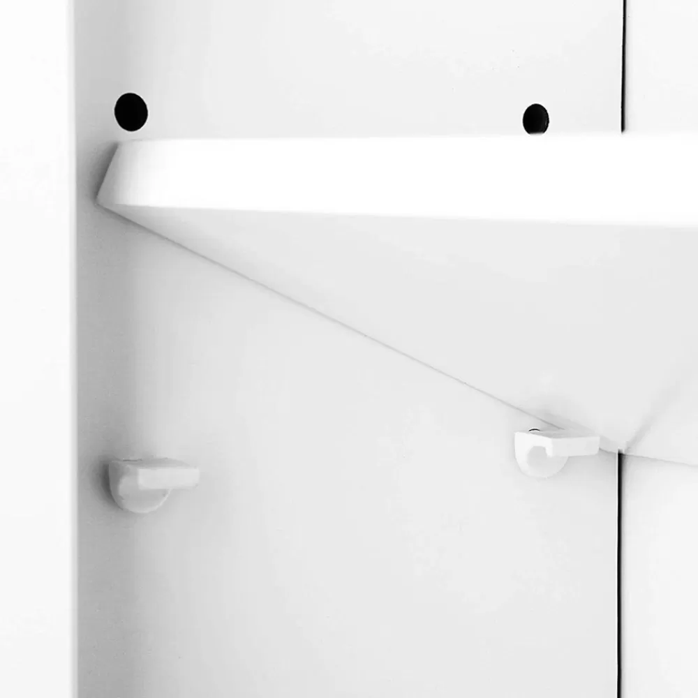 – Die Ablage hinter der Schranktür ist 5-stufig höhenverstellbar, sodass Sie Hygieneartikel unterschiedlicher Größen unterbringen können.