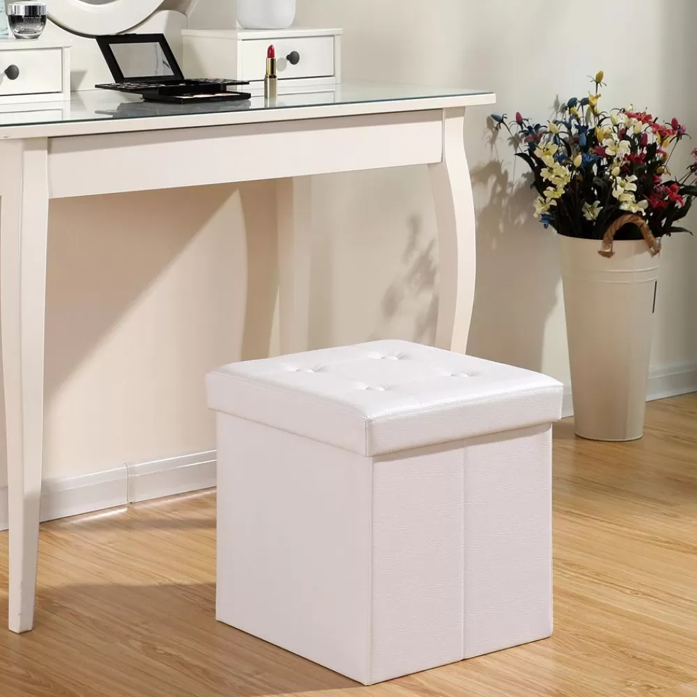 Sale SONGMICS Kleiner Sitzwürfel Kunstleder Weiß