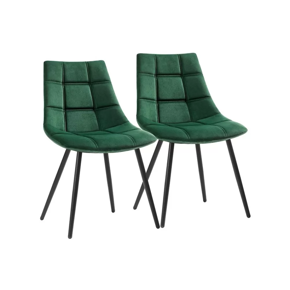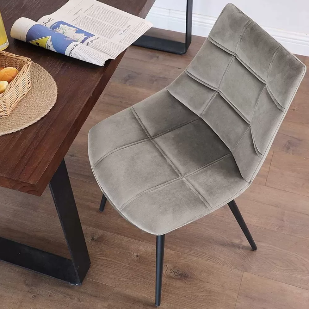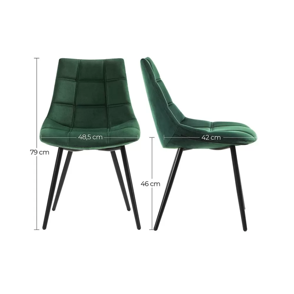 5 cm dicke Schaumstoffpolsterung, hochwertiger Samtbezug, ergonomisch geformte Sitzschale – Diese Polsterstühle sind unwiderstehlich für all jene, die nach einer weichen und komfortablen Sitzgelegenheit fürs Esszimmer Ausschau halten. Setzen Sie sich auf einen dieser Stühle und trinken Sie am Morgen gemütlich eine Tasse Kaffee oder genießen Sie kalte Drinks an heißen Sommertagen. Zudem sind diese Küchenstühle mit 4 robusten Eisenbeinen ausgestattet, was für eine hohe statische Belastbarkeit (bis 110 kg) sorgt.Produktdetails: