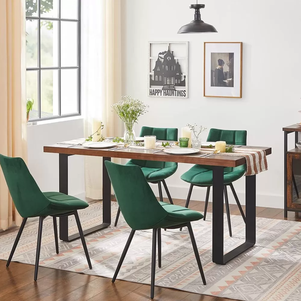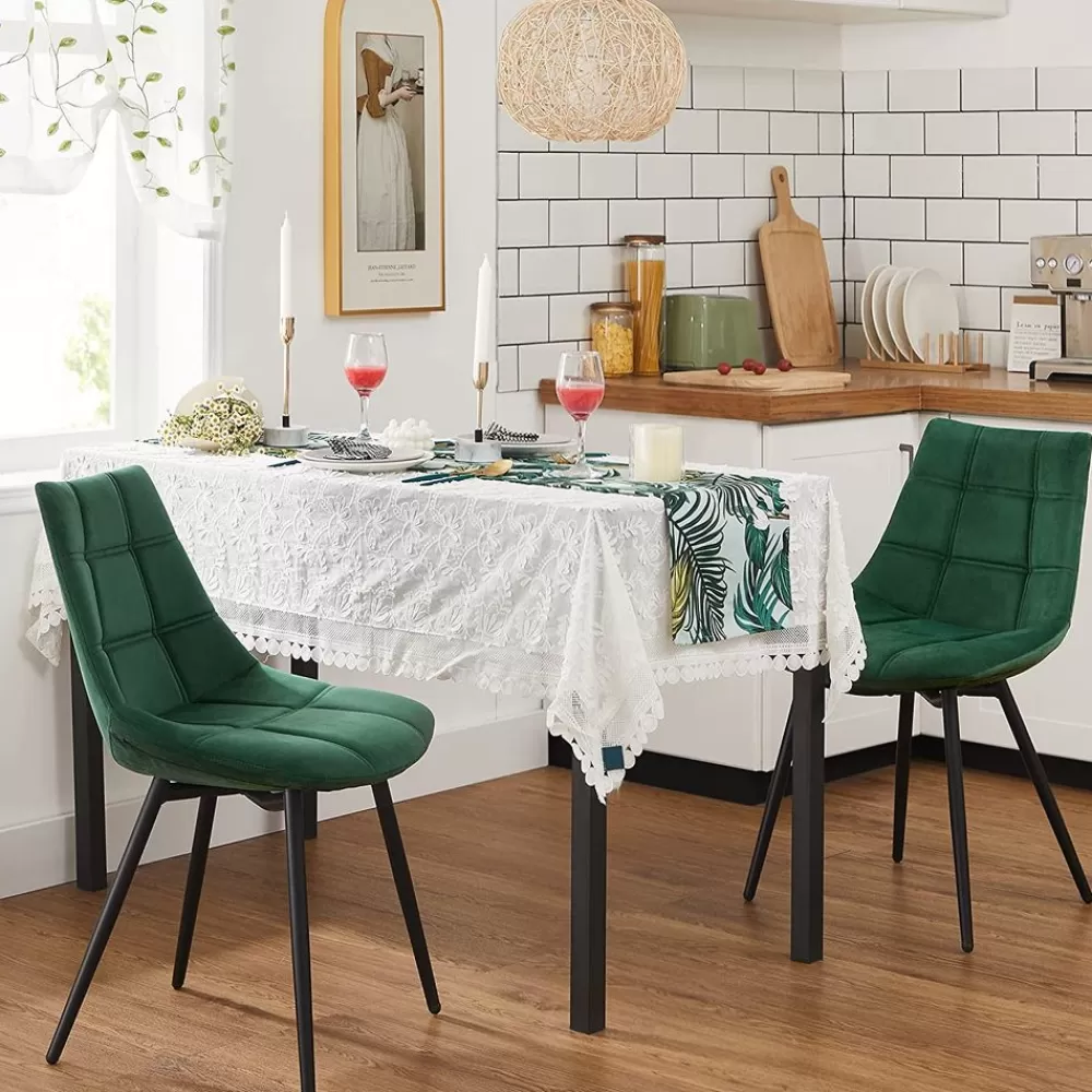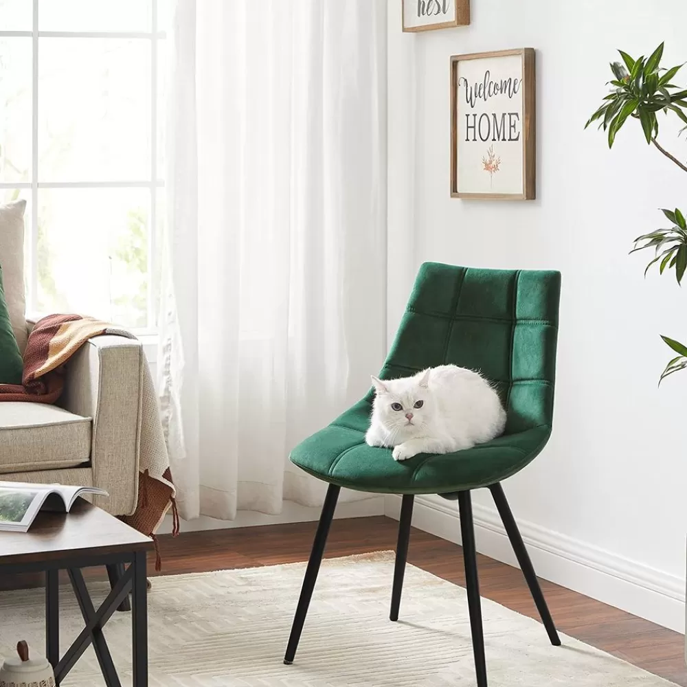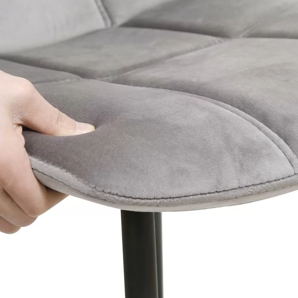 5 cm dicke Schaumstoffpolsterung, hochwertiger Samtbezug, ergonomisch geformte Sitzschale – Diese Polsterstühle sind unwiderstehlich für all jene, die nach einer weichen und komfortablen Sitzgelegenheit fürs Esszimmer Ausschau halten. Setzen Sie sich auf einen dieser Stühle und trinken Sie am Morgen gemütlich eine Tasse Kaffee oder genießen Sie kalte Drinks an heißen Sommertagen. Zudem sind diese Küchenstühle mit 4 robusten Eisenbeinen ausgestattet, was für eine hohe statische Belastbarkeit (bis 110 kg) sorgt.Produktdetails: